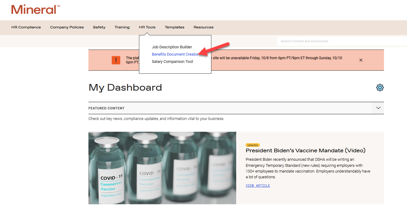 We are happy to inform you that you may now access all Mineral products, including the Benefits Document Creator, from the same login page.